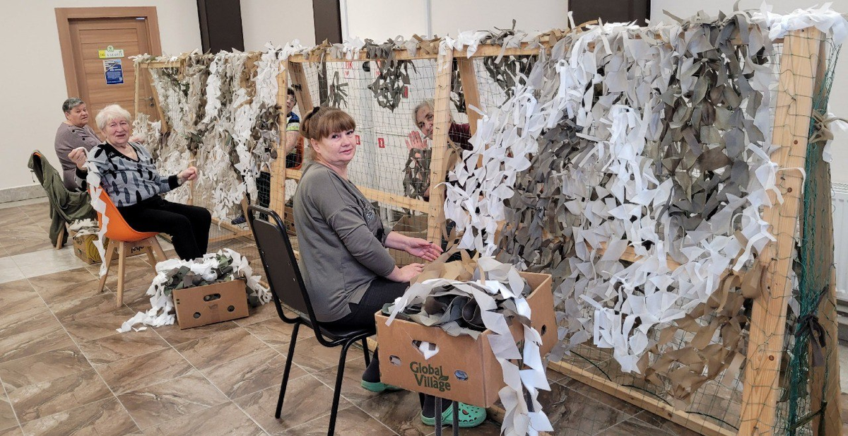 Мастерицы деревни Пеники каждый день в строю, каждый день их умелые руки вплетают ленты в сети-основы. Изготовленные сети, а их уже порядка 23 штук, будут упакованы и переданы волонтерам для отправки на фронт.