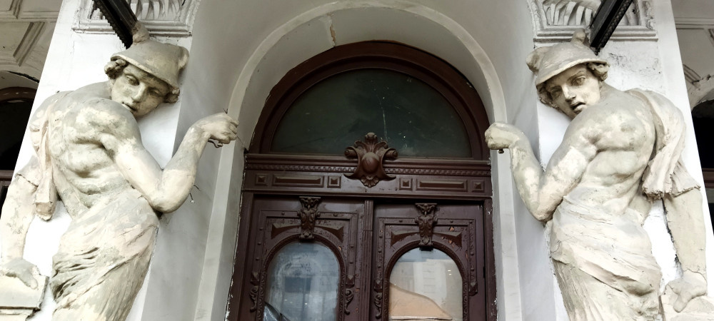 Сегодня я буду размышлять о мусоре. Да, на улицах грузинской столицы я увидела столько мусора, что размышляю о нём до сих пор. Потому что до слёз обидно – красивый город, полный исторических памятников, архитектурного достоинства и величия, покрыт мусором, как нищий бродяга рваным тряпьем… Мусорные кучи, заброшенные здания, помойки, грязные подземные переходы, корявые заборы – всё это, к сожалению, позор старого Тбилиси. И я его осуждаю. Вместе с памятниками. Да, в Тбилиси много памятников, которые, как мне кажется, тоже с большим неодобрением относятся к тому, что творится сейчас на улицах столицы. Вот, например, атланты. На здании бывшей гостиницы. Видно их возмущение и недоумение: они сто лет поддерживают, как могут, одно из красивейших зданий Тбилиси, и что же? Разруха и мерзость запустения вдруг воцарились в их мире. Здание бывшей гостиницы «Ветцель» было построено в 1911 году по проекту немецкого архитектора Леопольда Бильфельда. Трехэтажный красавец-дом с архитектурными украше