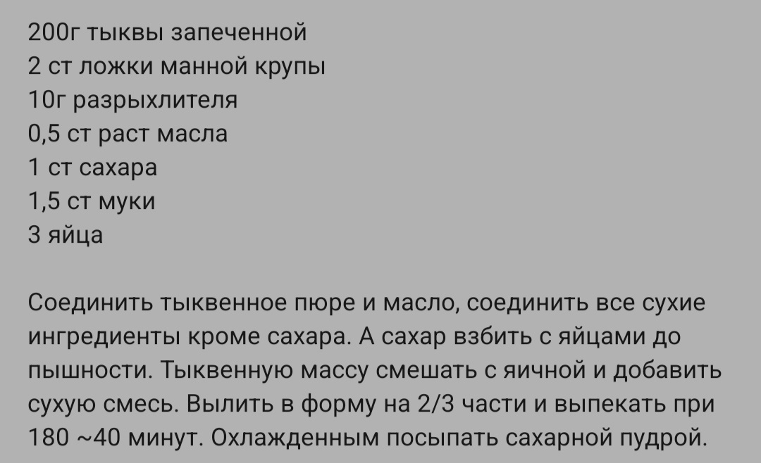 Тыкву надо нарезать и запечь в духовке. Потом сделать пюре с помощью блендера. У меня блендера не было, я пропустила через мелкую тёрку .