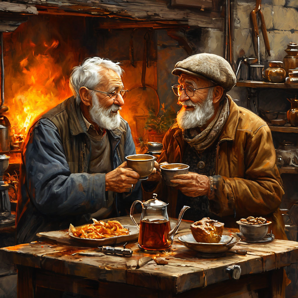 — Ну что, Петрович, — сказал Василий Семёныч, наливая ещё по кружке, — давай закусим. У меня тут печенье осталось. Правда, оно, кажется, ещё с прошлого года...