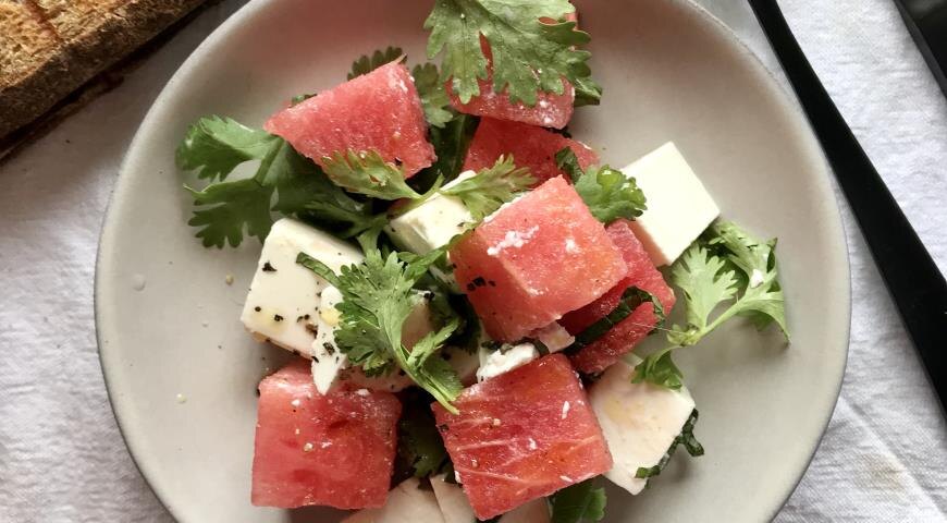 Заголовок: “Салат с арбузом, фетой и мятой: освежающий летний десерт” Вступление: Салат с арбузом, фетой и мятой – это легкое, освежающее и невероятно вкусное блюдо, которое идеально подходит для жарких летних дней. Сочетание сладкого арбуза, соленой феты и ароматной мяты создает неповторимый вкус, который взбодрит вас и подарит заряд энергии. Этот салат легко приготовить, и он станет отличным вариантом для летнего обеда, ужина или пикника. Ингредиенты: Пошаговый рецепт: Советы и дополнения: Заключение: Салат с арбузом, фетой и мятой – это легкий, освежающий и очень вкусный летний салат, который порадует вас и ваших близких своим необычным сочетанием вкусов. Попробуйте этот рецепт и насладитесь летними красками и ароматами!
