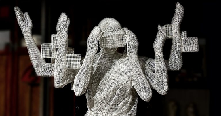 Скульптура будет носить название Imagine, и похожа она на человека, который уже напрямую связан с виртуальной реальностью и живет в мире, где каждый носит очки Apple Vision — этакая многорукая богиня Кали, решившаяся освоить современные технологии. Фигуру создадут художники Андрей Блохин и Георгий Кузнецов из Recycle Group, арт-дуэт делает объекты из промышленных материалов и уже не в первый раз работает с искусственной сеткой. Разместится скульптура на территории строящегося ЖК Famous в Багратионовском проезде. «Произведение символизирует стирание границ между реальным и виртуальным мирами в современной жизни. Она отражает состояние, в котором человек одновременно существует в нескольких измерениях, становясь частью гибридной реальности. Это метафора нового этапа эволюции человеческой природы, где технологии становятся неотъемлемой частью восприятия и опыта», — рассказал художник Андрей Блохин. «Виртуальную» девушку создадут из пластиковой сетки с термоформовкой на металлическом карка