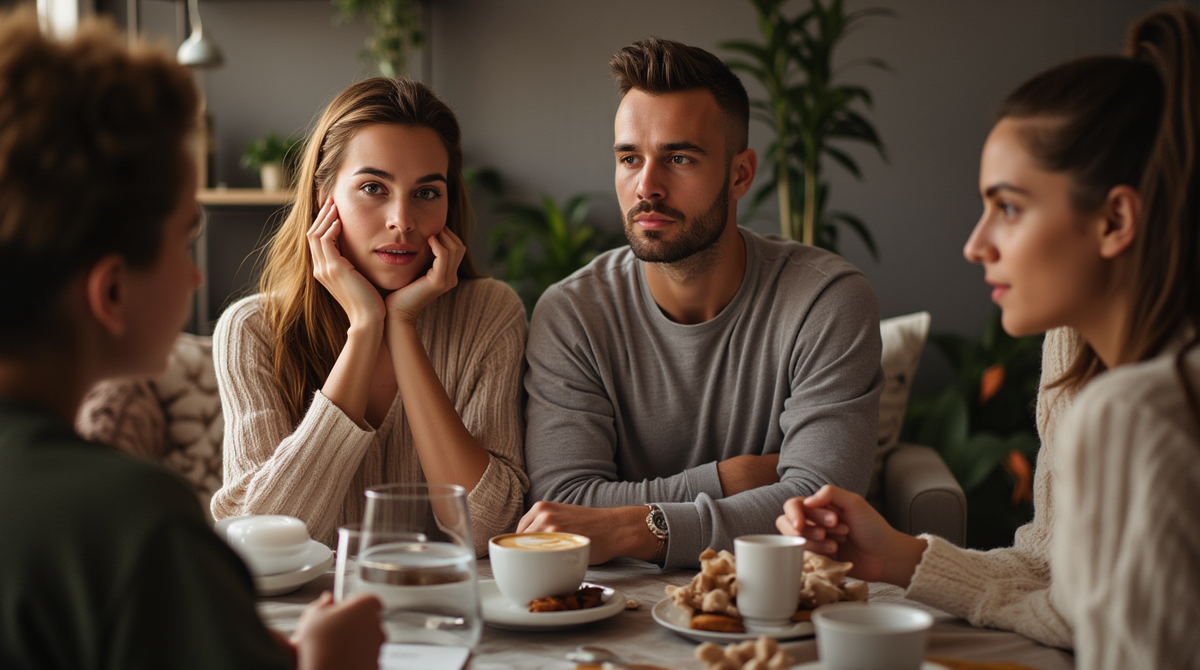 На следующий день в дверь позвонили, когда Анна заканчивала готовить обед. Дмитрий открыл – на пороге стояла тётя Лариса с сыном Олегом. Анна замерла у плиты, услышав их голоса.