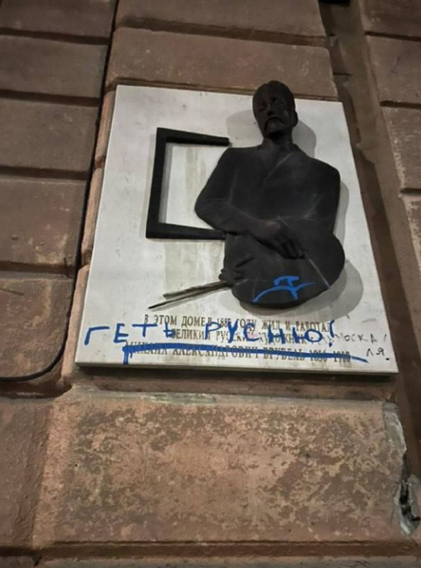 Из новостей: в Одессе осквернены мемориальные доски художника Михаила Врубеля, математика Александра Ляпунова, физиолога Ивана Сеченова и памятник Пушкину. На памятнике Пушкину написали «груз 200», на доске Врубеля — «геть русню! москаля».