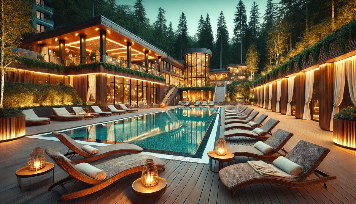 Отель категории 4*, расположенный в лесном массиве, предлагает высокий уровень обслуживания и спа-услуги на площади 1000 кв. м.