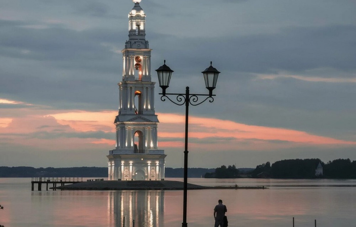 Колокольня Никольского собора — главная достопримечательность Калязина, возвышающаяся над водами Угличского водохранилища. Построенная в 1800 году, она является символом стойкости и возрождения города. Сегодня это популярное место для фотосессий и прогулок.
