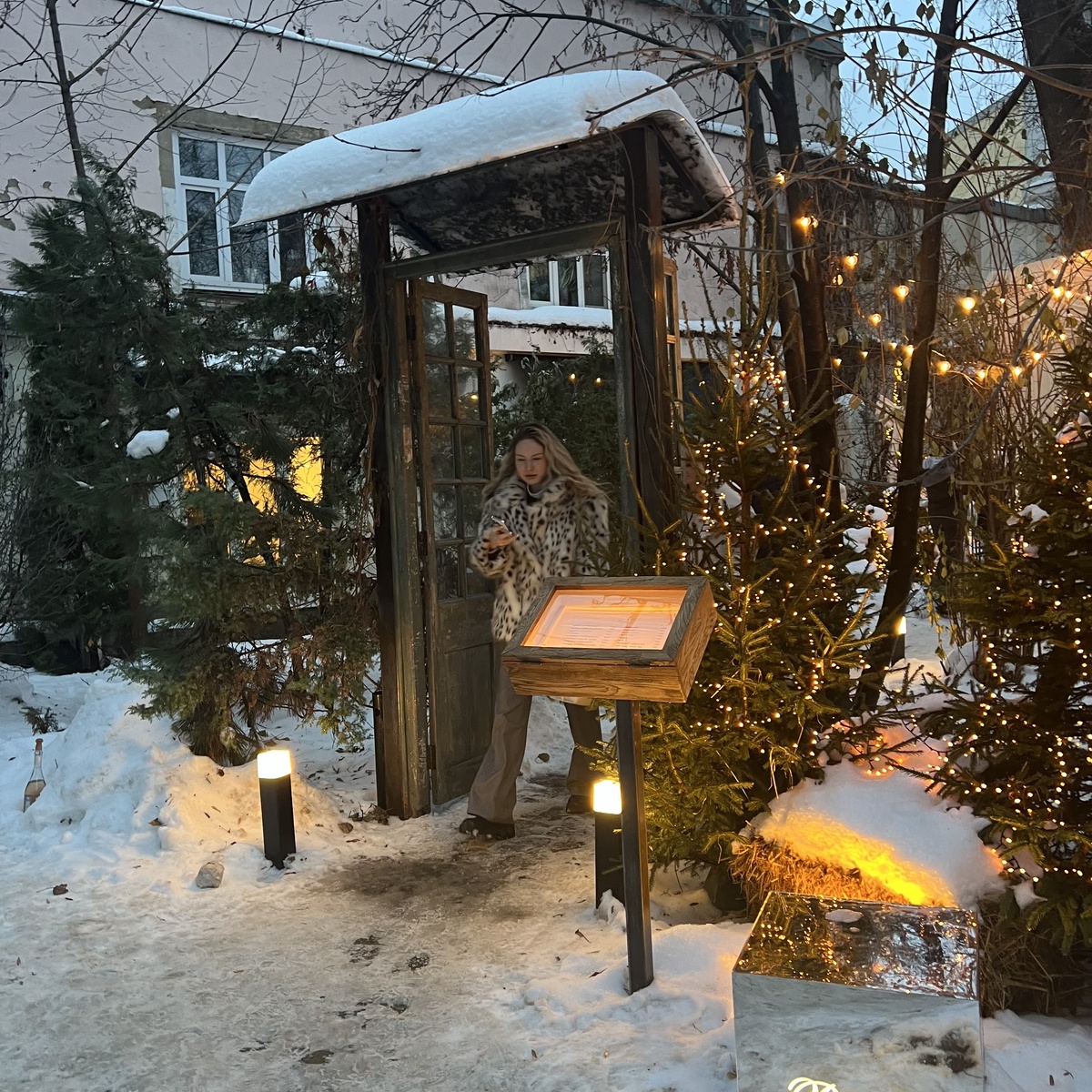 С недавних пор «Рябчик» в Москве – это не только птица и растение, но еще и кафе – относительно новый проект стилиста Егора Рябчика, основателя сети парикмахерских «Бублик». Открылось кафе во дворовых дебрях Покровки, и его надо искать. Кстати, один гастро-«Рябчик» уже обитал в районе Покровки, но чуть ближе к цивилизации и уже закрылся. Путь в кулинарный мир товарища Рябчика пролегает через арки старых зданий, по смачной слякоти и грязи, через парковку и к желтым огонькам в торце двора. Там мини-газон, несколько деревьев, ели, деревяная дверь без стен, тропинка, стойка с меню под стеклом, и тканевые серо-белые декорации на улице. Вход и окно выглядят одинаково, отличие – козырек с надписью.