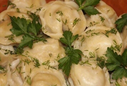 Готовые пельмени подавайте со сметаной, сливочным маслом, уксусом или бульоном.