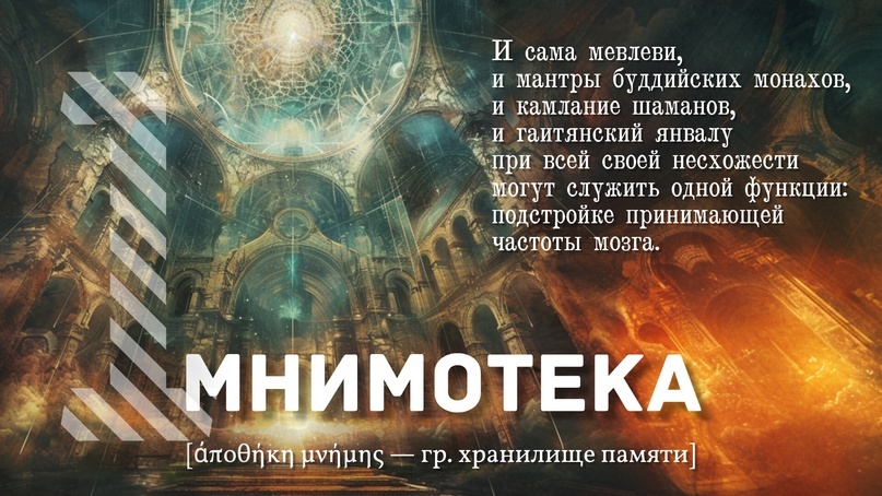 В Стамбуле я видел "саму" мевлеви — танец дервишей. Во время стремительного вращения танцоры, один за другим, впадали в состояние изменённого сознания. Это может быть признаком кратковременного подключения к хранилищу памяти. Ключ — в музыке или в движениях, или в их сочетании. И "сама", и мантры буддийских монахов, и камлание шаманов, и гаитянский янвалу при всей своей несхожести могут служить одной функции: подстройке принимающей частоты мозга.