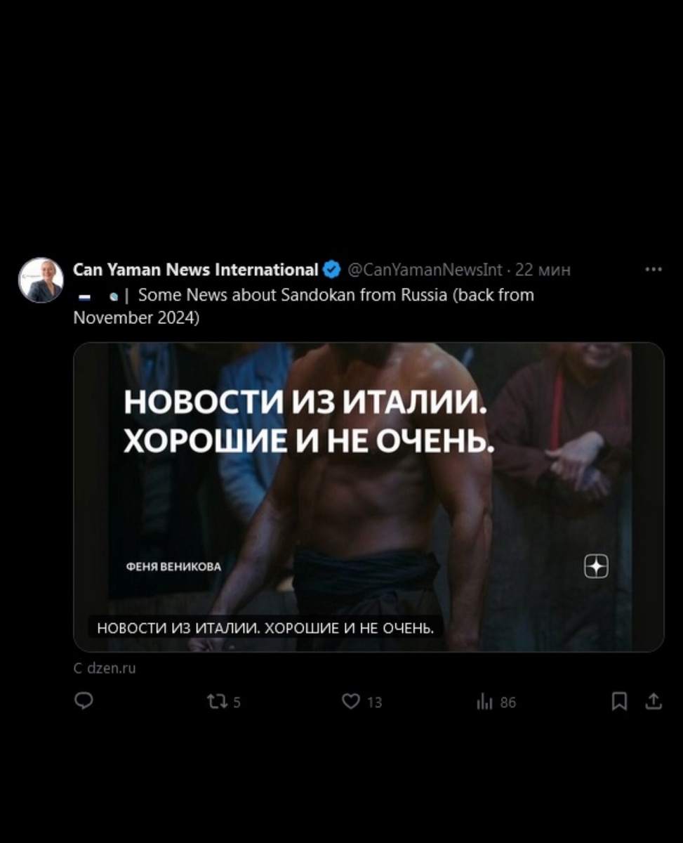 Утро сегодня началось с приятных новостей - фанатский аккаунт can yaman news international из Италии в двух соцсетях (к сожалению ,к обеим в России ограничен доступ)поделился ссылкой на мою статью здесь,в дзене.