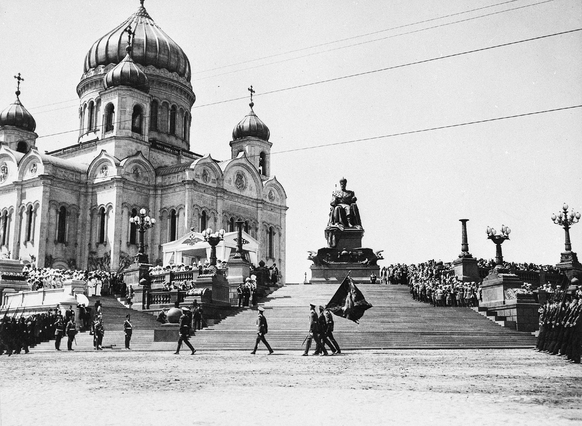 Есть в жизни константы! Одна из них - поведение осветителей на съемочной площадке. Свет выставили и дальше хоть трава не расти, всё по барабану... до окрика оператора. Вот и тут торжественный момент царствования Николая Второго. Открытие памятника Александру Третьему в Москве у Храма Христа Спасителя 30 мая 1912. Присутствует всё августейшее семейство и двор, высшие чины империи. Император Николай Второй самолично принимает парад гвардии. Приглашена пресса в лице нескольких синематографистов. Их кадры в последствии станут историческими и войдут во множество документальных фильмов. Камеры расставлены, выставлен свет, операторы крутят ручки, судорожно переставляют камеры ловя выгодный ракурс. И лишь осветитель отложил шляпу-конотье и встал в расслабленную позу плейбоя. Он свою работу сделал и ждет новых команд. А царь там или не царь - какое ему дело? Что видел осветитель. Похоже, какой-то генерал решил привести в чувство осветителя. Но это не точно...