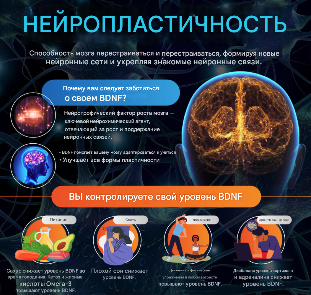 Нейропластичность — это удивительная способность нашего мозга адаптироваться, перестраиваться и формировать новые нейронные сети. Этот процесс позволяет укреплять знакомые нейронные связи и создавать новые, что является основой для обучения, адаптации и улучшения когнитивных функций. Одним из ключевых компонентов, влияющих на нейропластичность, является нейротрофический фактор роста мозга (BDNF). BDNF играет важную роль в поддержании и росте нейронных связей, а также в адаптации мозга к новым условиям. Высокий уровень BDNF способствует улучшению всех форм пластичности мозга, что в свою очередь помогает лучше понимать и анализировать наши чувства и поведение. Приложение "Эмоция" использует научно обоснованный подход к улучшению эмоционального и психологического здоровья. Благодаря нейропластичности и поддержке уровня BDNF, приложение помогает вам развивать свой мозг и лучше понимать свои чувства и эмоции. "Эмоция" работает напрямую с вашим подсознанием, чтобы выявить истинные причины пе