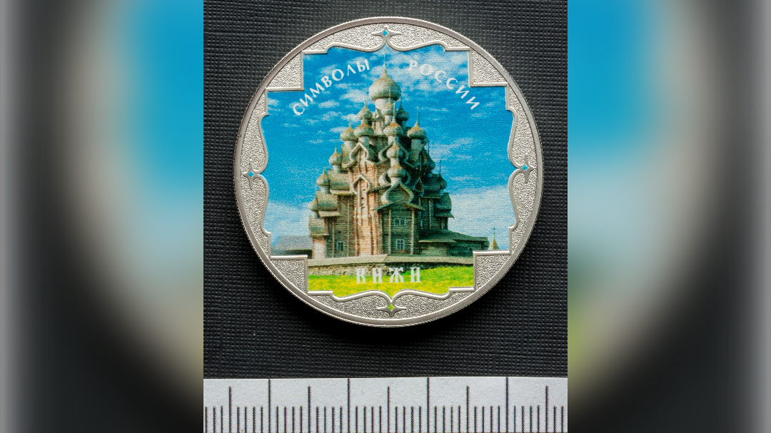 Серебряная монета «Три рубля» с изображением Преображенской церкви на острове Кижи появилась в музее