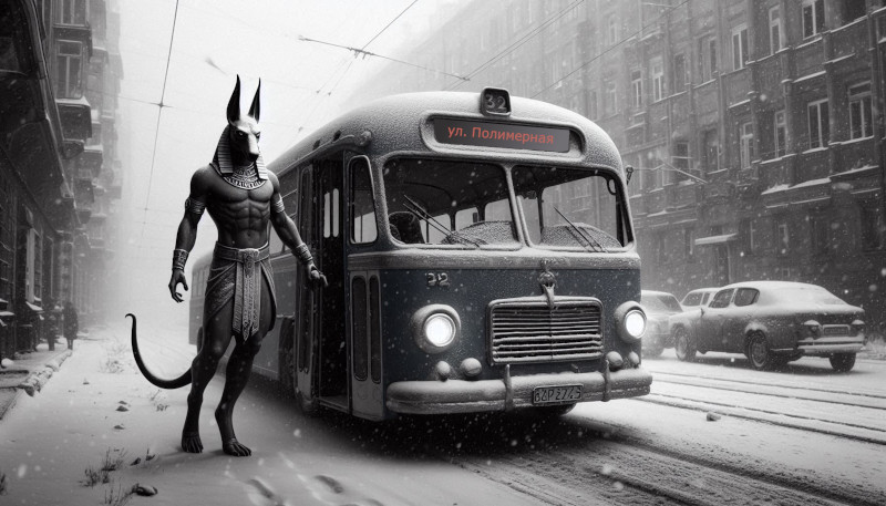 Наконец подошёл троллейбус — такой же, как в мои школьные годы, облупленный синий рогатый зверь. Помог я старушке затащить гроб в салон и сам удобно сел у окна на высокое сиденье над колесами. Загудел троллейбус, ходко покатил по свежему снежку. Окна заиндевели, сквозь них ни черта не видать.