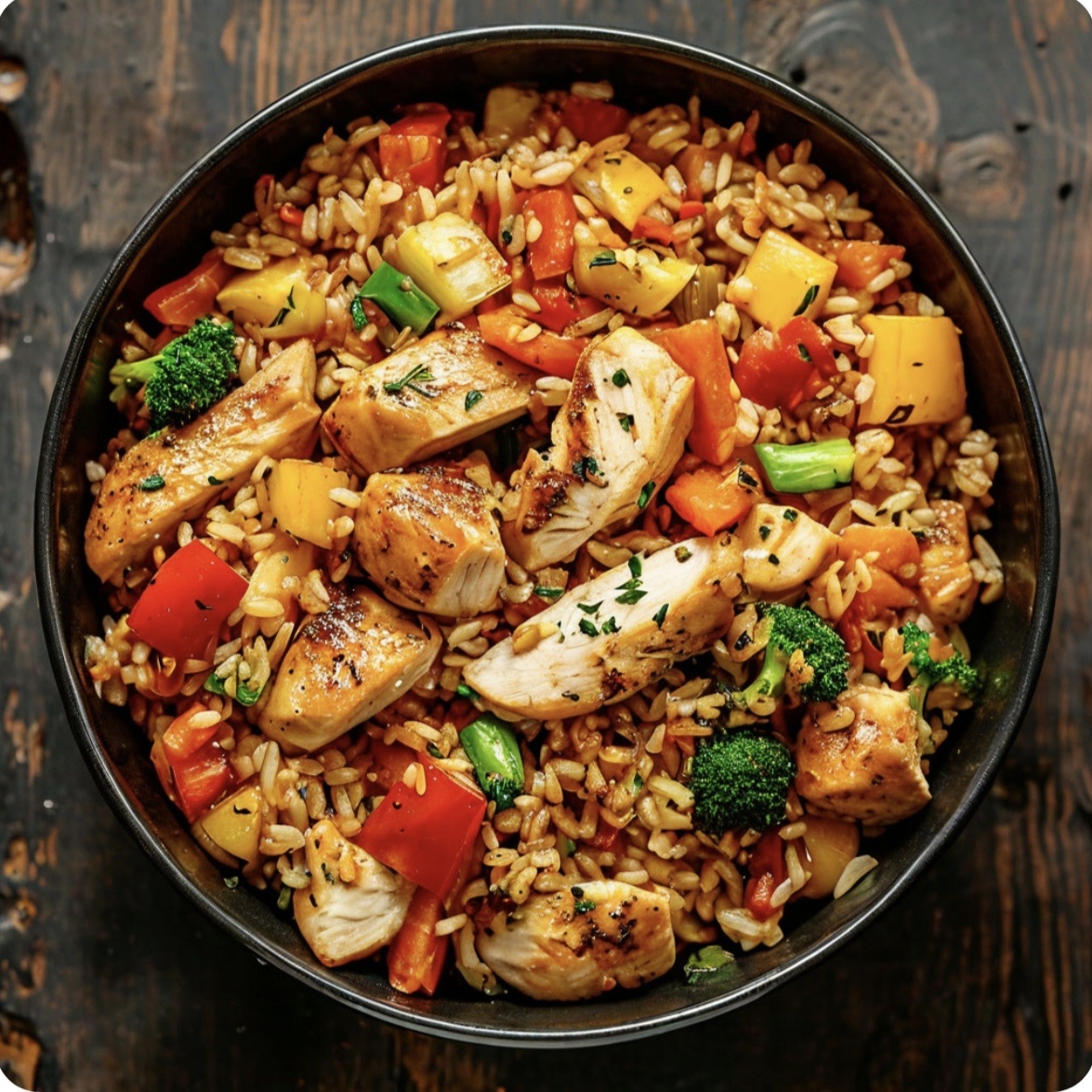 Ингредиенты: Приготовление: Пищевая ценность (на порцию): Почему этот рецепт полезен: Курица — источник качественного белка, необходимого для роста и восстановления мышц. Овощи добавляют витамины и клетчатку, которая поддерживает нормальную работу пищеварения. Рис является источником углеводов, которые обеспечивают энергией на долгое время. Этот рецепт можно приготовить за 30 минут и он идеально подходит для сытного обеда или ужина! Хотите больше полезных рецептов? Подписывайтесь на "Питание с умом" и готовьте вкусно каждый день!