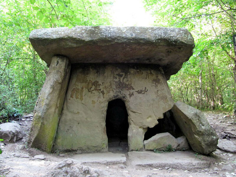 Истории из жизни "Расскажу историю, которая произошла со мной год назад. Есть в моих краях один дольмен (это такая будка из камней с дыркой — одни говорят, что в древности в них хоронили воинов, другие — что их строили их для привлечения добрых духов). Само место, где стоит этот дольмен, весьма интересно: прямо над ним срослись осина и дуб, словно растут они из одного корня. Я, когда первый раз попал туда, очень удивился тому что там не поют птицы и практически не пробивается солнечный свет сквозь кроны деревьев. Но самое главное, что когда приходишь туда, сразу становится поразительно спокойно, словно все мысли уходят, и можно «зачароваться» на долгое время. Я там даже спал, и за час высыпался так, словно спал неделю. Я полюбил это место. Мог после работы поехать на дольмен и сидеть там, пока не стемнеет. И вот, решил я в очередной раз поехать туда. Была осень, темнеть начинало уже в 7-8 часов вечера. Пока доехал и прошел к горе, стемнело порядочно. Не сказать, что прямо глаз выколи,