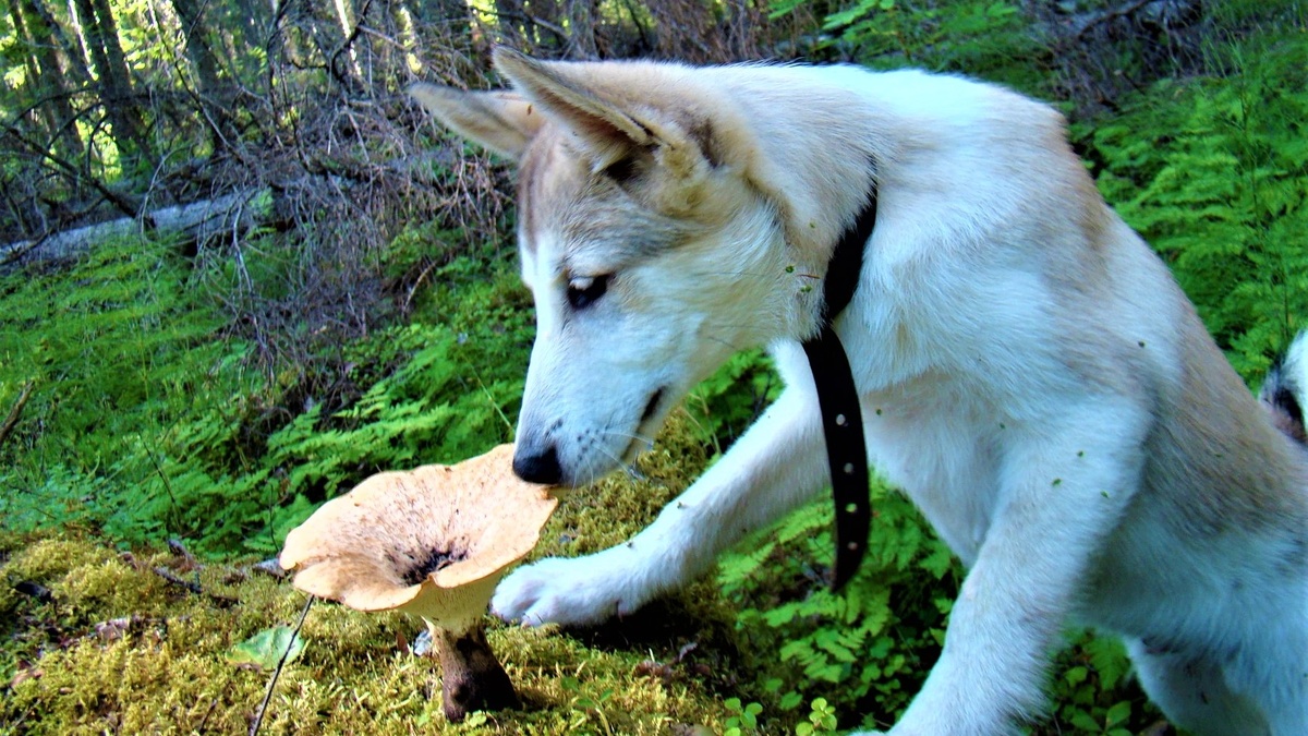 Как правило, в первые выходы щенки стараются находится рядом и держат меня в поле зрения. Через несколько прогулок щенки ведут себя более уверенно, и я начинаю создавать им сложности. Щенок отвлёкся, шаг, два и спрятался за дерево. Некоторые щенки впадали в панику, начинали бегать, скулить. Это не лучший вариант, но его можно исправить. Один такой момент я упустил, и повзрослев, кобель, теряя меня начинал выть на всю тайгу. Надо отметить, что при этом он продолжал меня искать. Найдя след, он замолкал и догонял меня. Так вот, если щенок пробегал меня и начинал паниковать, я его не звал, а издавал естественный шум: сломаю ветку, пошуршу одеждой, либо выходил и продолжал движение в сторону, но не к щенку. Щенок должен бежать ко мне, а не наоборот. У щенка не должно закрепляться паническое поведение. Таким образом мне удавалось выработать у щенков правильное поведение. Потеряв меня, они начинали пристально вслушиваться и идти в точку, где видели меня в последний раз. Но были и курьёзные случаи. Так было с Арканом. Проделав с ним такой трюк, я сам потерял его из виду. Я аккуратно начал выходить из укрытия, чтобы рассмотреть где он. Его нигде не было. Продолжил поиски и тут услышал легкий треск сзади, Аркан также тихонько шёл за мной. У него это осталось и поныне. Остановишься на обед, разведёшь костер, вскипятишь чай, а его как нет. Его присутствие можно определить только по навигатору, он как правило лежит в 15-20 метрах и подходит, только когда я начинаю собираться, это время его обеда. Большинство щенков начинали искать меня, используя обоняние. Постепенно, выполняя более сложные задачи, щенок приобретает уверенность в себе, навык поиска.
