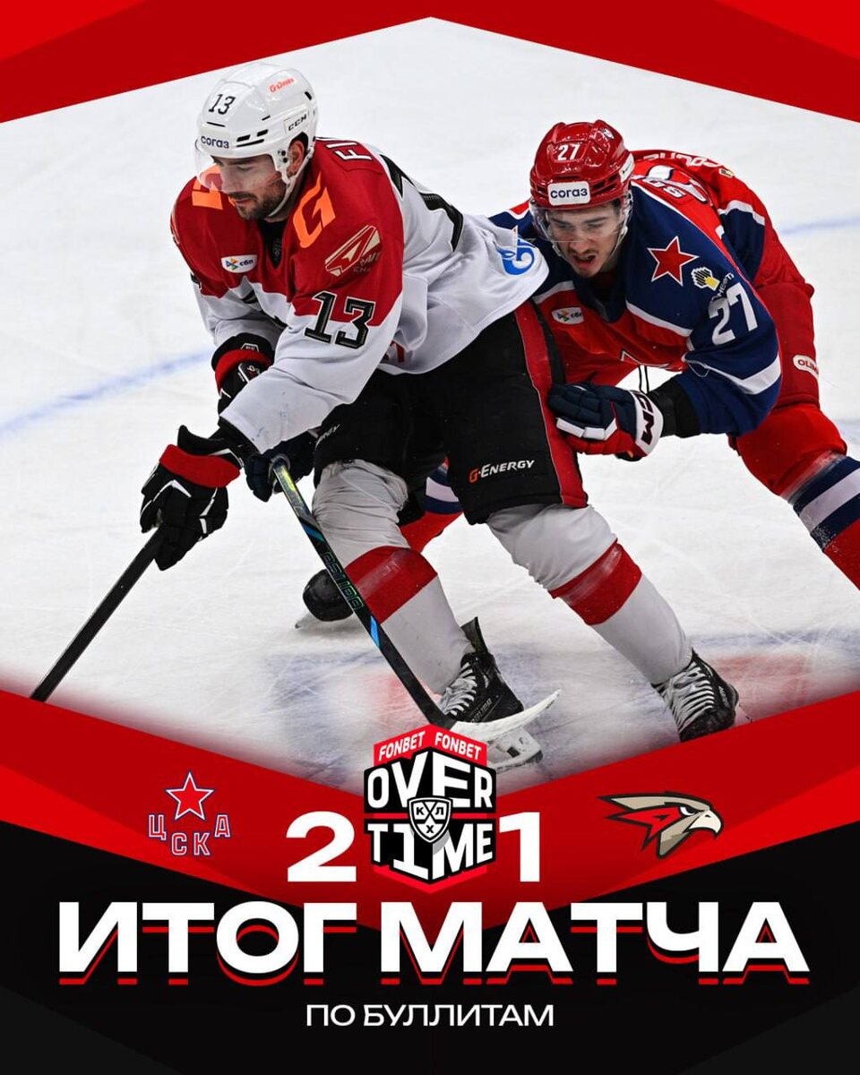 В первом периоде Наиль Якупов на 6-й минуте открыл счёт. Во втором периоде ЦСКА активизировался и сумел сравнять счёт, сделав его 1:1. В третьем периоде ни одной из команд не удалось забить. Дополнительное время не принесло результата, и судьба матча решалась в серии буллитов, в которой победу одержал ЦСКА. Итоговый счёт — 2:1. Фото: ХК Авангард