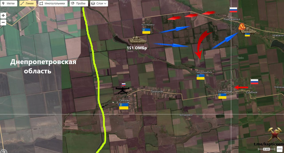 ◾️После Запорожья ближайшим населенным пунктом остается Преображенка, а также фактически еще одно село, разделенное на Троицкое и Орехово.