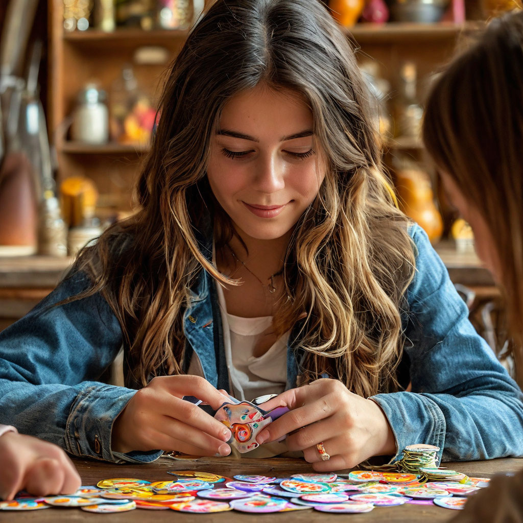 Механизм игры таков: имеется несколько десятков круглых карточек (в оригинале 56), у меня в первый раз вышло 57, на каждой карточке расположены от 4 до 8 картинок. От себя добавлю, 8 картинок- оптимально!