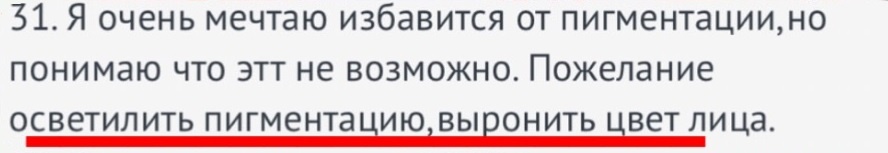 Сегодня побуду Дедом Морозом и исполню одно заветное желание. Да, действительно, избавиться от пигментации практически невозможно. Это - самая сложная работа. Но осветлить пигментацию, выровнять тон кожи, освежить цвет лица - реально! Ровная ухоженная кожа, на которой пигментация менее заметна. Я всегда говорю, что для достижения результата нужно не одно какое-то вау-средство. Каким бы сильным оно не было, оно не решит задачу в одиночку. Сила в комплексе походящих друг другу средств. Именно в таком комплексе каждый продукт раскрывается на все 100%, дополняя и усиливая действие соседа. Пигментация - та задача, с которой большинство начинает активно и усиленно работать с ноября/декабря. А с этим клиентом мы уже в декабре добились огненных результатов, начав работу летом. Прекрасный пример того, что не надо откладывать решение проблем и ждать подходящего момента. Если проблема есть, лучшее время решать ее - сейчас. Откладывание на потом - это всегда игра в рулетку. Проблема может усилитьс