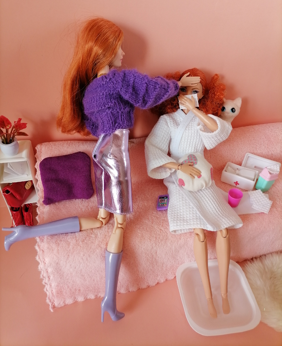 Дневник барби ведёт Андрея (barbie looks#20) Я вернулась домой после очередного собеседования, а тут Кристина сидит вся в соплях ноги греет. Андрея: -Ты же с утра хорошо себя чувствовала. Кристина: -Я немного погуляла. Все знают, что Кристина очень любит цветы в любом виде и остальное к ним прилагающееся. Потому этим утром к нам загянула Фрида и подарила Кристине вазу сделанную своими руками. Кристина обрадовалась подарку и тут же отправилась к болотам, потому что в голове у нее родилась (на ее взгляд) восхитительная мысль. Кристина: - так вот, пока я шла домой очень замёрзла, уже выбросила этот камыш и хотелось бежать скорее в тепло, но нет - я его подобрала вновь, полюбуйся какая красота! "Сомнительно, но окэй"- подумала я. Андрея: - лишь бы тебе нравилось! Кристина: - а тебе нет!? Андрея: - нравится конечно, ложись скорее, буду тебя лечить. Мне нравится характер Кристины, если она что-то задумала, ее не остановить. Спасибо что заглянули в мой дневничок! Сопли уже вылече