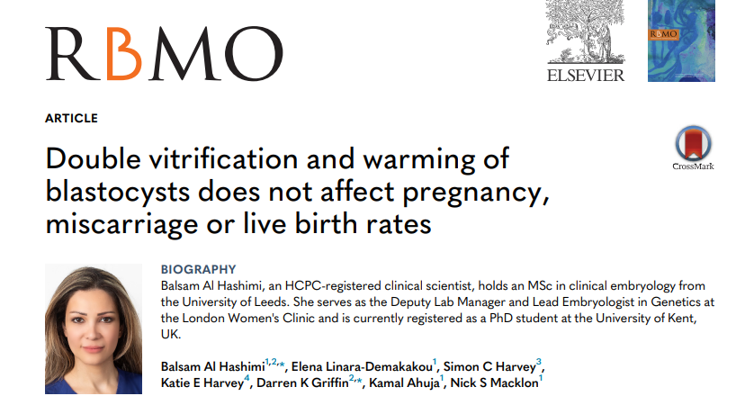 Ссылка на статью Дизайн исследования : ретроспективный наблюдательный анализ криопереносов эмбрионов с января 2017 года по август 2022 года. Выборка : 1 - группа (84 бластоцисты ) подвергшаяся двойной заморозке, включала замороженные бластоцисты, которые были витрифицированы на 5-7 день культивирования, их разморозили, чтобы провести биопсию трофэктодермы (один или два раза) и повторно заморозили. 2 - контрольная группа - 729 бластоцист, подвергнутых однократной криоконсервации, которым провели биопсию трофэктодермы на 5-7 день. Протокол стимуляции использовали с антагонистами, триггер ХГЧ либо трипторелин. 96% криопереносов были сделаны на заместительной гормональной терапии. Выводы: Эмбрионы, подвергнутые повторной заморозке, были заморожены на более поздних стадиях развития и выросли больше, чем эмбрионы, подвергнутые однократной заморозке. Из 813 криопереносов после ПГТ-А из контрольной группы 452 привели к успешному рождению здоровых детей (56%). Не было выявлено сущест