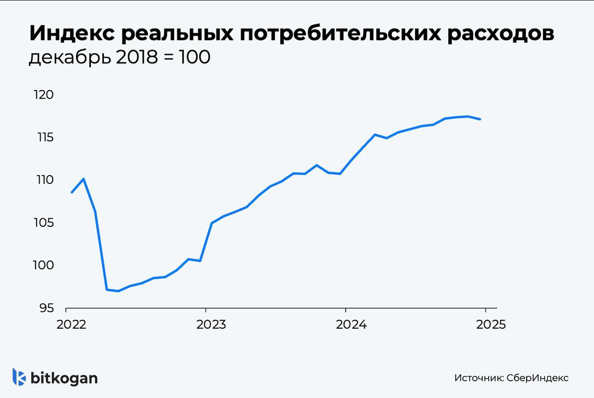 Недавно мы обсуждали, что кредитование замедляется. Теперь это начинает сказываться на спросе в экономике. ➡️ В январе много общался с предпринимателями из разных сфер — и почти все жалуются на снижение спроса. Пока это только первые звоночки, но, думаю, по итогам первого квартала цифры в статистике это подтвердят. Что видно уже сейчас? СберИндекс за декабрь продемонстрировал снижение реальных потребительских расходов на 0,3%. Январские оперативные данные говорят, скорее, о стагнации потребления. ▪️Опросы ЦБ в начале января показали, что бизнес стал хуже оценивать перспективы спроса в ближайшие 3 месяца. Пока ожидания все еще положительные, но тренд идет вниз — ближе к историческим средним значениям. А что дальше? Пока регулятор проводит жесткие денежно-кредитную и макропруденциальную политики, кредитование будет продолжать остывать. А значит, снижение спроса тоже не за горами. ➡️ Больше всего это ударит по тем, кто завязан на деловой цикл: производство товаров длительного пользования,