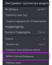 Эталонные изображения можно добавить с помощью пункта меню "Модель" > "Добавить эталонное изображение". Откроется файловый браузер для выбора желаемого изображения. Вы можете выбрать любой файл изображения PNG или JPG со своего компьютера в качестве эталонного изображения.