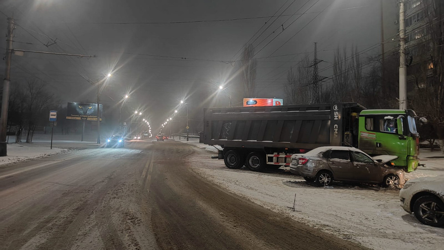 Происшествие случилось в 20:20 на Московском шоссе рядом с поликлиникой № 9. Там 32-летний мужчина на самосвале Shacman «допустил столкновение» с «Ладой Грантой». За рулем легковушки сидел 39-летний водитель. Травмы получила его 36-летняя пассажирка, ее госпитализировали.