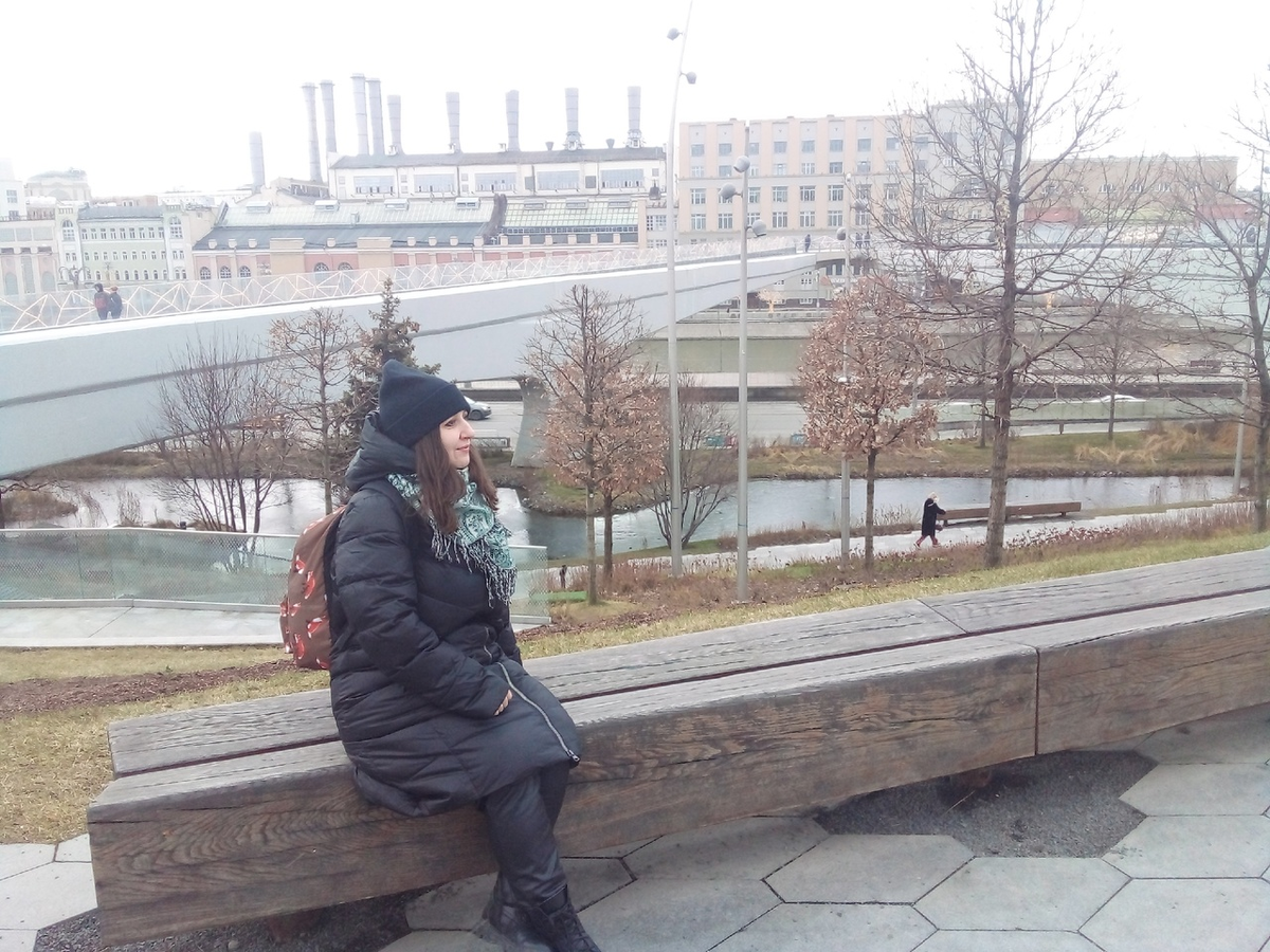 В начале февраля случилось немного Москвы, ездили вдвоём с мужем на два дня по делу. Прогулки были очень быстрыми, даже без особого плана. Я была в Москве пару раз - лет 10 назад одним днем и несколькими культурными днями ещё в школе. Большие города я не люблю, поэтому у меня традиционный шок от расстояний и скоростей. Прямо с вокзала поехали на ВДНХ, в 8 утра там не было людей, играла приятная музыка из советского кино. Потом погуляли в Зарядье. Мне был интересен не столько сам парк, сколько место, где стояла знаменитая гостиница "Россия". Совместное фото с мужем у меня только такое)))) Вообще у меня в плане прогулок были литературные пожелания. Например, стоя на этом месте, я думала о Гуле Королёвой. Она родилась в районе улицы Балчуг и в детстве смотрела на кремлёвские звёзды. Так говорилось в советской книжке. Конкретный дом я искать не стала, а вот посмотреть на Кремль примерно с этого ракурса - посмотрела. – А тот огонёк горит? – Горит. Спи. – Покажи мне его. Мама взяла Гулю н