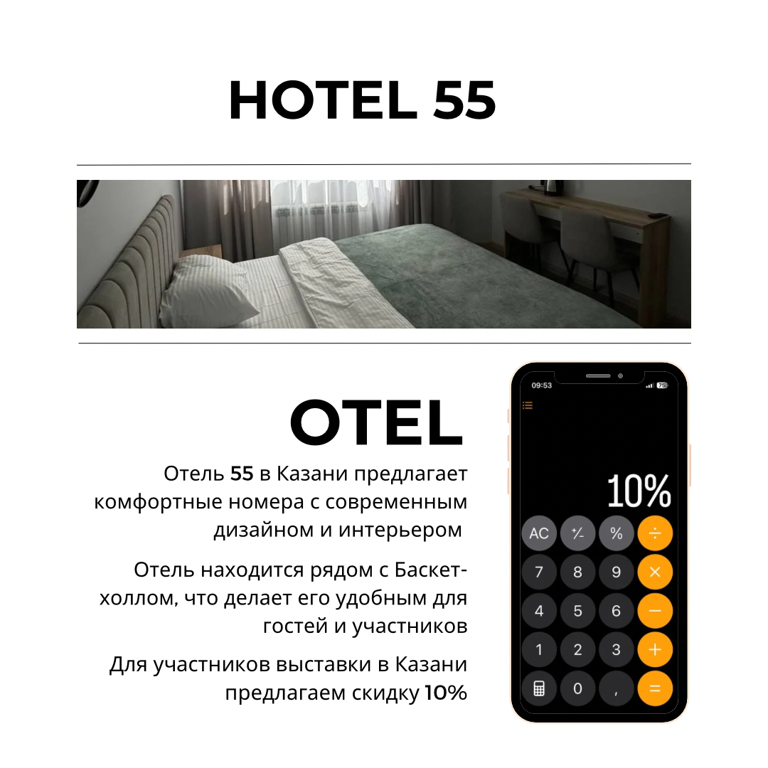 Для участников дверной выставки в Казани мы подготовили приятный бонус — скидку 10% на проживание в отелях - партнёрах. ОТЕЛЬ 55 - Почему идеальный вариант для вас ?🤔 🔹 Кухня с большим набором посуды 🔸 Бесплатный wi-fi 🔹 Уютные номера, чистое и мягкое постельное белье 🔸Демократичная цена ❗️г.Казань, ул. Островского,д.55 📍 Условия действуют по нашему промокоду для всех участников. PROMO: ВЫСТАВКА 🎟 Забронируйте комфортное проживание https://booking-online.agast.ru/?hms_system_id=6383/ и сосредоточьтесь на главном — Дверной выставке DOOR CONF! Ждём вас в Казани!