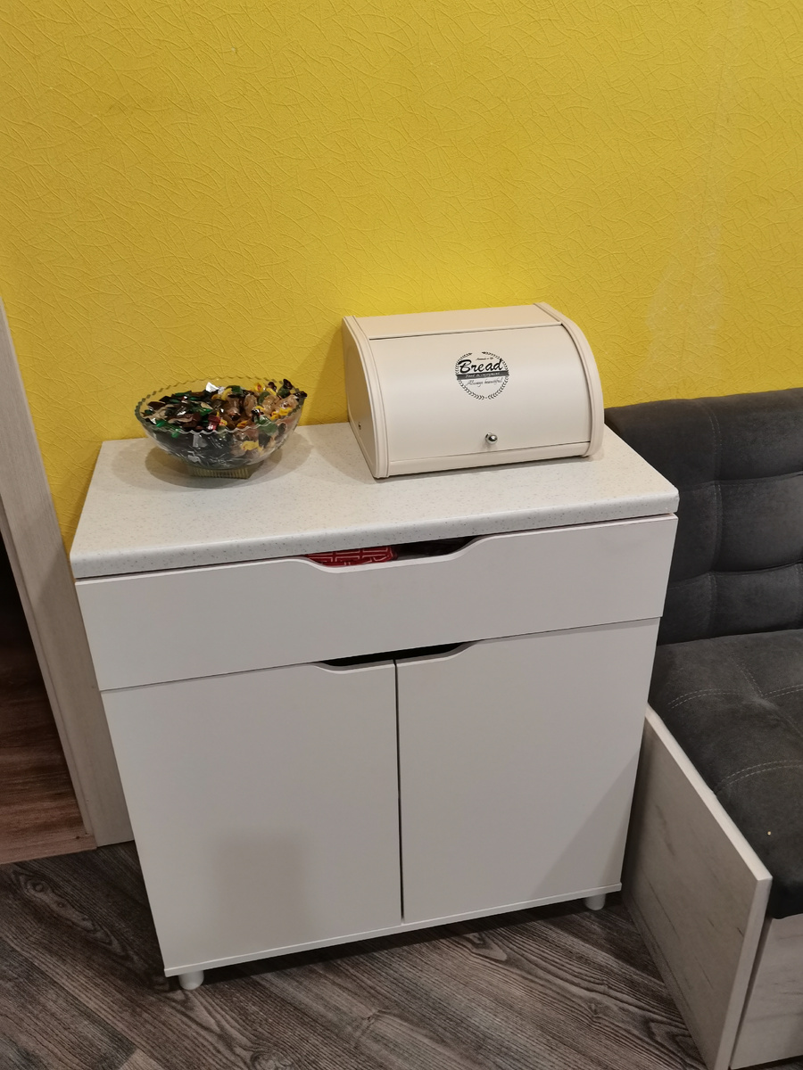 Всем привет! Получила я свои первые зарплаты в этом году и тут же принялась их тратить) Решила поделиться своими недавними покупками и отзывами на них! 1. Хлебница Раньше у нас была прозрачная пластиковая хлебница, которая стояла в шкафу-пенале. А хлеб при этом почему-то всё время лежал на столе)) Тогда я решила поставить и хлебницу на стол, но из-за прозрачности крышки создавалось ощущение бардака. Еще на комоде, где раньше стоял аквариум, теперь стало совсем пусто. Цветок поставить не вариант, его съедят коты... Значит поставим там хлебницу! Но она должна быть красивая и подходящая по цвету к нашей кухне. И вот она - наша прелесть ) Она металлическая, очень вместительная, брали на WB. Покупкой довольны на все сто! 2. Фильтр для воды проточный Об этой покупке мы задумывались уже давно. Раньше пользовались кувшином, но потом качество фильтров нам не понравилось и какое-то время воду мы покупали в бутылках. В принципе, вода из под крана у нас очень хорошая. Нет ни запаха, ни ржавчи