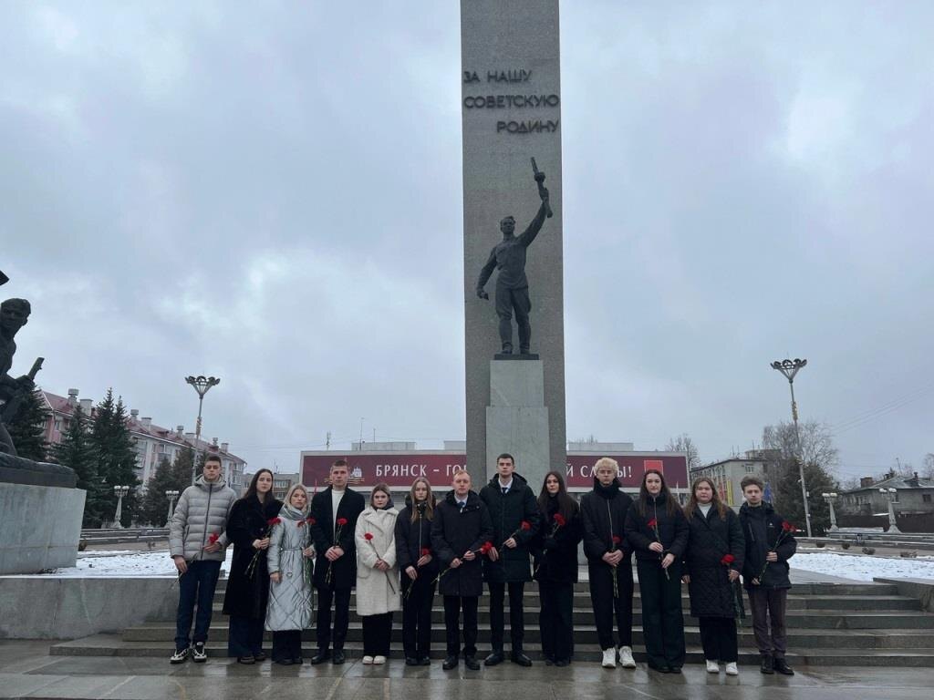4 февраля 2025 года наш университет присоединился к Всероссийской акции «Красная гвоздика», организатором которой выступил Национальный исследовательский Московский государственный строительный университет совместно с Российским Военно-историческим обществом и Российским Союзом Ветеранов. Цель акции – сохранение исторической памяти о подвиге советского народа, который внес ключевой вклад в победу над фашизмом. Мероприятие приурочено к 80-летию Победы в Великой Отечественной войне и Году защитника Отечества. В эстафете памяти принимают участие вузы, общественные организации, отделения РВИО и РСВ в более чем 80 городах Российской Федерации, включая города воинской славы и трудовой доблести. Представители Совета студентов и аспирантов совместно с активистами Студенческого патриотического клуба нашего университета посетили площадь Партизан, где установлен памятник освободителям Брянска – воинам Советской армии и партизанам, ставший одним из символов нашего города. В знак благодарности от