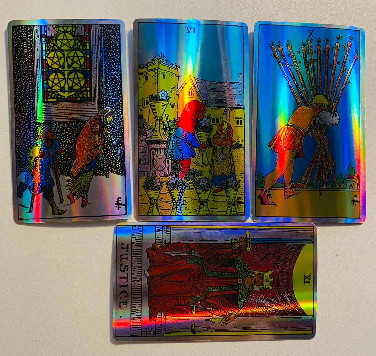 Начнем с самого начала... вышла Пятерка Пентаклей, она нам указывает на чувство неуверенности и, возможно, даже некоторой безысходности, которые он испытывает сейчас.