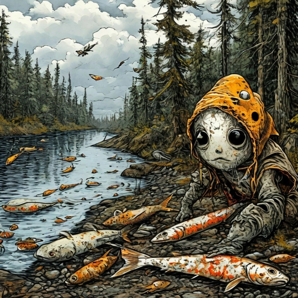 Грузный, весом возможно в добрых 150 килограмм, а может и того больше, мужик сидел на хлипеньком стуле, сколоченным вероятно им самим же из подручного материала, и не дышал. Его огромная взъерошенная шевелюра мирно покоилась на столешнице, рядом с полу опустевшей тарелкой на которой валялись обглоданные рыбьи кости. Рядом с той тарелкой на столе стоял недопитый бокал пива и в нём до сих пор шипели, оседая пузырьки. Пустая бутылка «Хайникен» валялась на полу. Одну рыбину егерь так и не осилил, но почти смахнул её рукой, в момент, когда умирал. Его широко раскрытые, как будто удивлённые глаза, вцепились неподвижной мёртвой хваткой в застигнутых врасплох детей, стоящих на пороге кухни.
