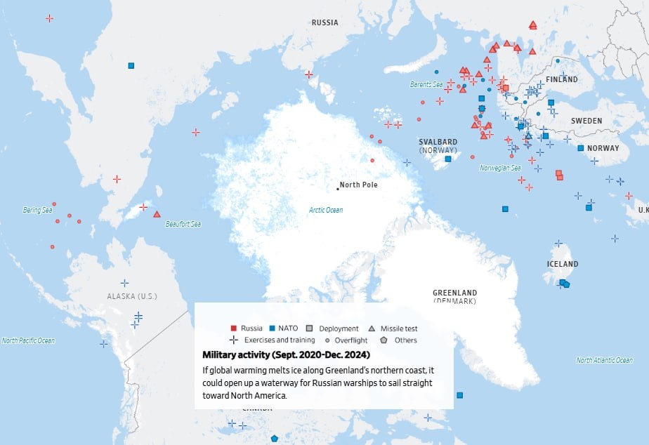 The Wall Street Journal считает, что Россия выигрывает гонку за доминирование в Арктике, сотрудничая с Китаем и оставляя позади США. «В Арктике никогда не было так жарко. В прошлом году российские атомные подводные лодки практиковали пуски крылатых ракет вблизи стран-членов НАТО — Норвегии, Финляндии и Швеции. Эти учения последовали за арктическими военными играми Организации Североатлантического договора, которые включали в себя десантирование в холодных морях. В следующем месяце Россия и Китай направили патрульные катера в ледяные воды Крайнего Севера», – говорится в публикации. США и Россию разделяют всего 53 мили Берингова пролива, недалеко от Полярного круга. Но в геополитическом плане они отдалены друг от друга больше, чем когда-либо в последние десятилетия, отмечает издание. Политической «жаре» способствуют и климатические изменения. Арктика нагревается быстрее, чем другие части планеты. По мере таяния морского льда Северный Ледовитый океан открывается для глобального судоходств