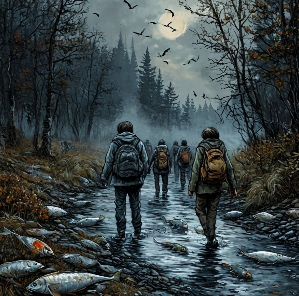 Алина не успела ответить на вопрос мальчика, потому как со стороны водонапорной башни начали появляться первые люди. Дети безмолвно наблюдали за тем, как они оживленно жестикулировали руками. А потом, к своему ужасу, увидели, как какая-то женщина склонилась над лежащими на берегу рыбинами и несколько из них покидала в чёрный пакет. Почти все из той горстки людей последовали её же примеру, и лишь один из мужчин, принюхавшись, выкинул рыбу обратно в реку.