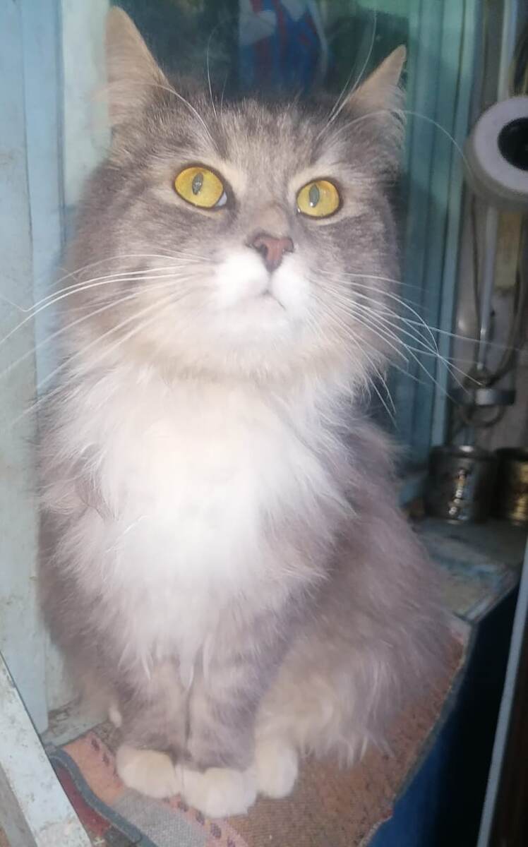 Кастрирован. Возраст примерно 1.5 года. Приютили на балконе, но там холодно.