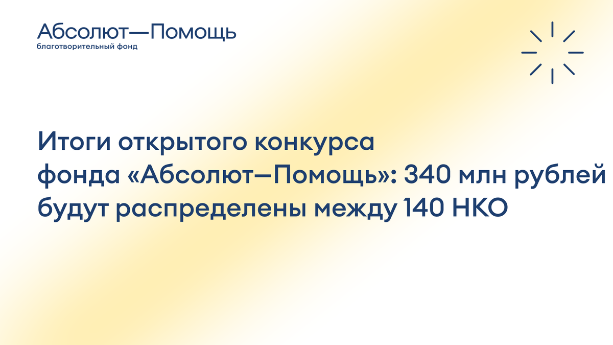 Благотворительный фонд «Абсолют—Помощь» подвел итоги открытого конкурса по развитию практик помощи детям и молодым взрослым в уязвимой ситуации. Грантовый пул — 340 млн рублей — будет распределен между 140 некоммерческими организациями.