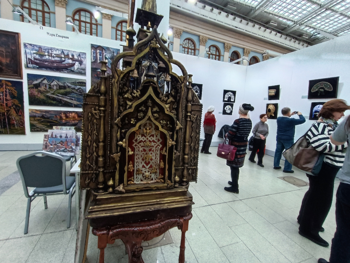 Долго я собиралась на проходящую сейчас в Гостином дворе выставку-ярмарку "Уникальная Россия". Была на ней лишь однажды несколько лет назад, и, честно говоря, не очень поняла этот формат. С одной стороны действительно здесь собраны уникальные изделия российских мастеров. С другой - для ярмарки маловато или дороговато. Да и билет платный (но в закрытой части канала я накануне поделилась промокодом на бесплатный билет😘) В общем, не "Ладья". Но раз уж появилась возможность, отчего бы не сходить и не полюбопытствовать. "Уникальная Россия" - не столько про торговлю, сколько про презентацию мастерства. Здесь обязательно организуют и исторические выставки. На этот раз была устроена выставка дизайнерских кокошников. Выставка творений торжокских золотошвей. И уникальных ювелирных изделий в рамках выставки к юбилею пробирной палаты России. На картины - а их здесь представлено много, я тоже смотрела как на часть выставочной экспозиции. Хотя, наверное, их можно и купить. Постеры с картин