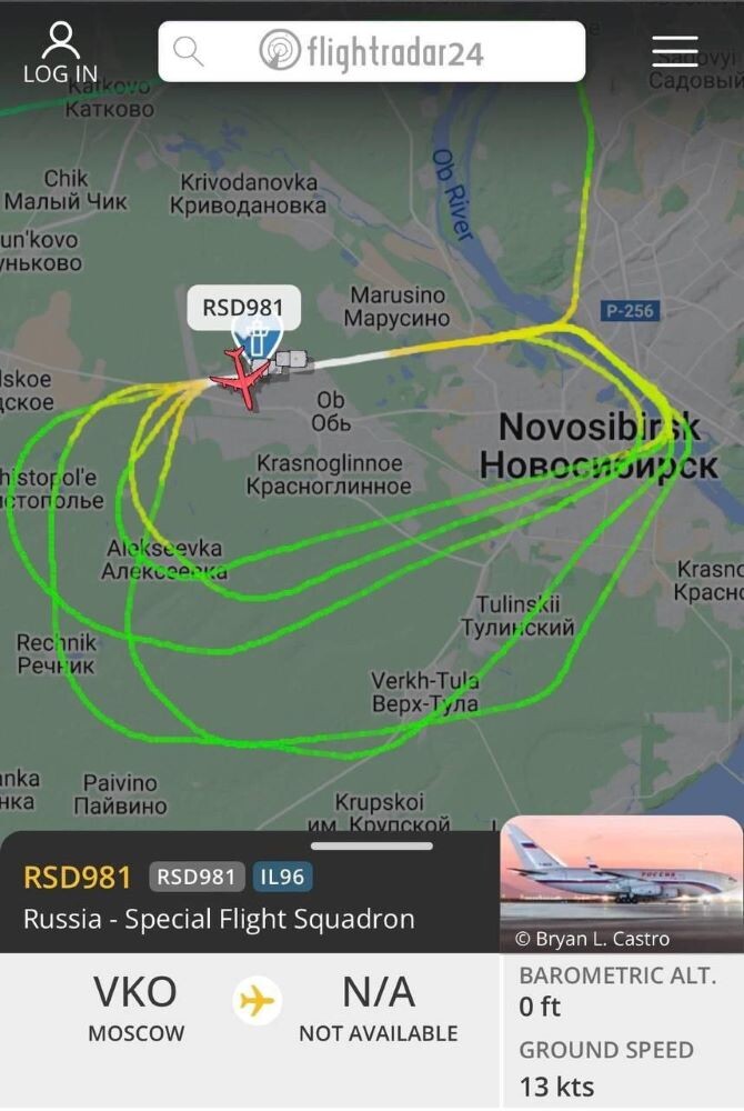 «Президентский» самолёт сделал несколько кругов над столицей Сибири, а также совершил не менее пяти посадок и взлётов в аэропорту Толмачёво. По информации, он производил учебно-тренировочный полёт.