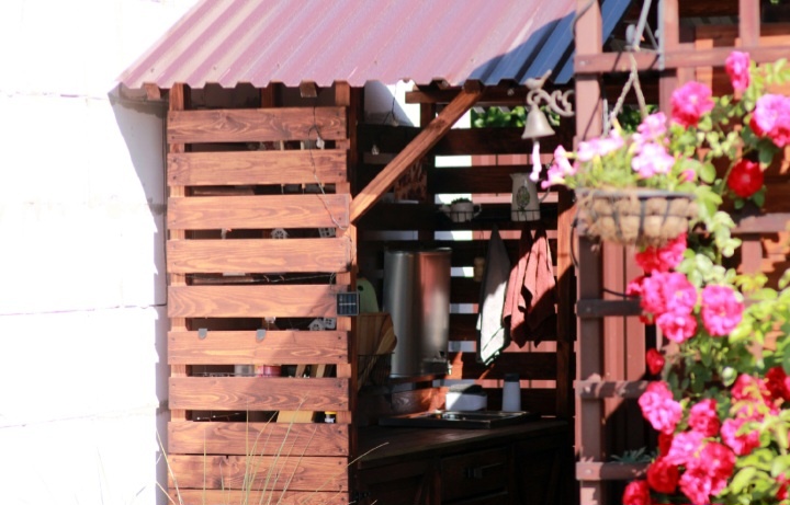 Стол садовода был моей давней мечтой. Как только мы купили дачный участок, я стала искать в интернете материал, способный помочь нам с его обустройством. Среди всего прочего, незнакомого мне ранее, я видела садовые столы. Такие милые, с полочками, садовым декором и прочими интересными мелочами. Столы эти хочется рассматривать, не упуская из вида все их даже самые маленькие элементы. И вот пришло время и мы сделали с мужем такой стол. Так как он находится рядом с беседкой, мы сразу стали использовать его не по назначению. Готовили в самой беседке, а тут большой стол, вода, раковина и полочки. Садовые причиндалы мы сложили в нижнюю часть стола. Они там только хранились. Все растворы от болезней и вредителей делали на огороде у бочки с чистой водой. Воду для обслуживания стола мы приносим из этой же бочки, поэтому принести воду, а потом слить ее в опрыскиватель и пойти снова на огород опрыскивать как-то неумно. Весной я обнаружила, что все мои препараты и удобрения залило водой. Задней
