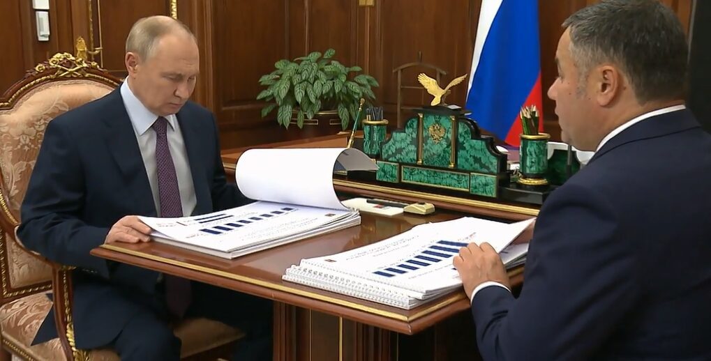 Президент России Владимир Путин обсудил вопросы социально-экономического развития с губернатором Тверской области Игорем Руденей во время рабочей встречи в Кремле во вторник. «За 2024 год 800 миллиардов рублей роста регионального валового продукта. Мы каждый год прирастаем, причем достаточно серьезно. Это благодаря тому, что идет сейчас импортозамещение и развитие нашей национальной экономики. Далее — это товары собственного производства, которые у нас есть. Тоже не остались в стороне, и у нас порядка 740 миллиардов рублей, практически рост в два раза [по сравнению с] 2017 годом», — доложил губернатор. Со своей стороны, российский лидер отметил, что в регионе хороший показатель по обрабатывающим производствам. Руденя также сообщил президенту о крупнейшем проекте в сфере туризма — курорте Большое Завидово, где планируется открытие трех отелей с общим объемом номерного фонда 1 400 единиц, а также двух крупных центров отдыха. «Красивые места какие», — отметил Путин, рассматривая презентац