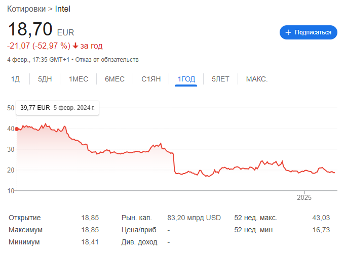 Если вы обратите внимание на график ниже, то сможете заметить, что год назад за одну акцию Intel давали в 2 раза больше денег, чем сегодня. Американский чипмейкер пребывает в состоянии глубокого кризиса, а пока ни один новый продукт не позволяет надеяться на улучшение ситуации. Например, серия процессоров Arrow Lake, на которую ставили инвесторы и руководство компании, стала настоящим разочарованием. Геймеры и рядовые пользователи отказываются покупать новые процессоры Core Ultra 200, ну а доходы преимущественно поступают с мобильного рынка, где данная серия не имеет конкурентов. Там царят совершенно другие правила, поскольку крупные сборщики связаны контрактами, а также построили сложную инфраструктуру, основанную на продукции Intel. Что до настольного рынка, то даже ОЕМ-сборщики не спешат наращивать отгрузки готовых ПК с Arrow Lake, ну а рядовые пользователи смотрят в сторону AMD.