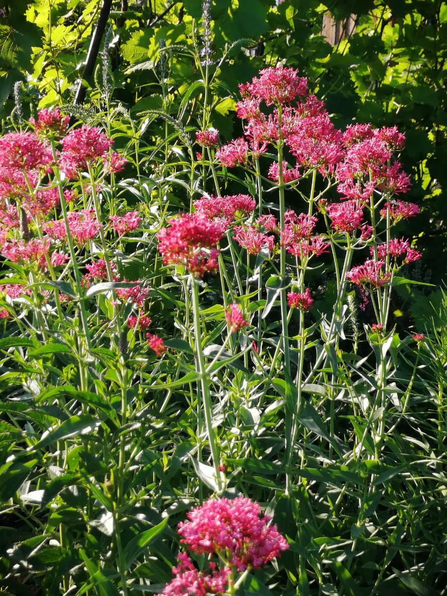 Чисто теоретически в моих условиях однолетником должен бы быть кентрантус. Причем он мне настолько нравится, что я, в общем, даже была готова заморочиться с ежегодным выращиванием рассады. Каково же было мое удивление, когда после нашей вполне суровой прошлой зимы я увидела перезимовавшие растения. Правда, выпады все же были, перезимовало в лучшем случае процентов тридцать от посаженного. Но, с другой стороны, не каждый же год у нас такие зимы с морозами без снега. Так что пока я приняла решение - нынче я кентрантус не выращиваю, а погляжу, что будет с зимовкой. Может быть, можно будет просто подсаживать по нескольку экземпляров раз в два-три года, а не выращивать его каждый год. Тем более что зимовавшие растения, безусловно, мощнее, чем кустики первого года жизни, не разваливаются и гораздо раньше зацветают. Львиная доля растений пока сидит по одну сторону винограда, но в прошлом сезоне я подсадила кентрантус и в основной цветник. Погляжу, что получится этим летом. Самосев есть, но