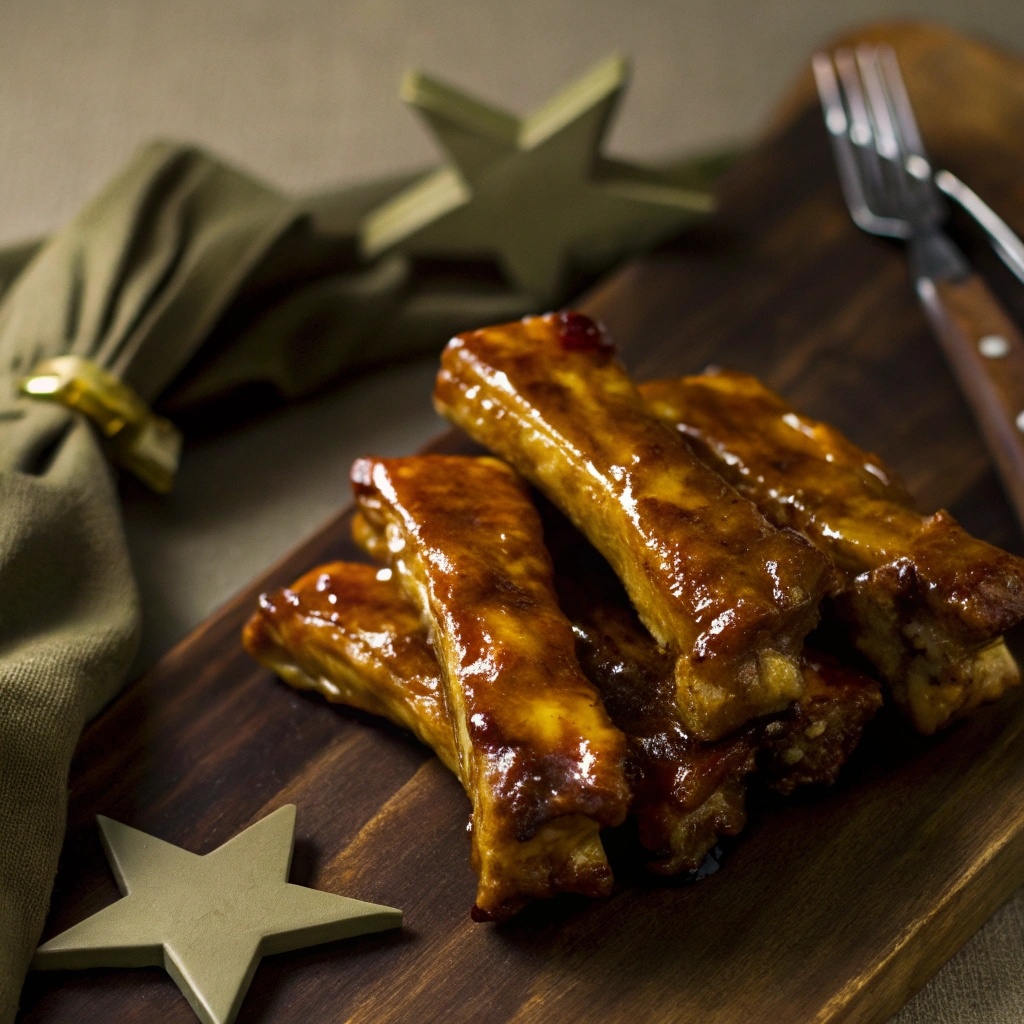 Замена: Мед → кленовый сироп; свинина → говяжьи ребра.