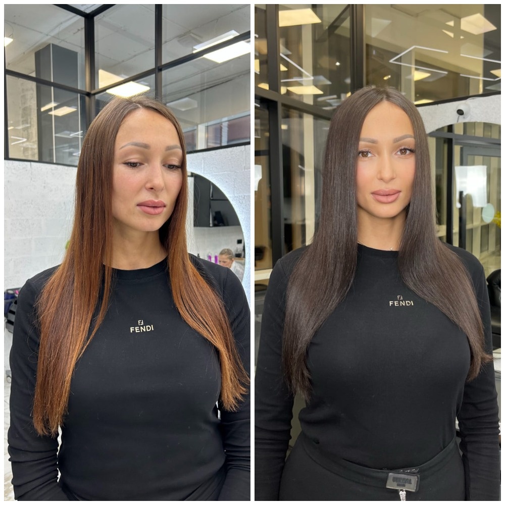 Этот цвет идеально подойдет девушкам с натуральными каштановыми, русыми и даже светлыми волосами. Главное — это правильно подобрать глубину оттенка в зависимости от вашего типа внешности и желаемого результата. Если вы хотите добавить коже теплоты, выбирайте более карамельные акценты. Если хотите холодные нюансы — добавьте пепельные или кофейные тона.