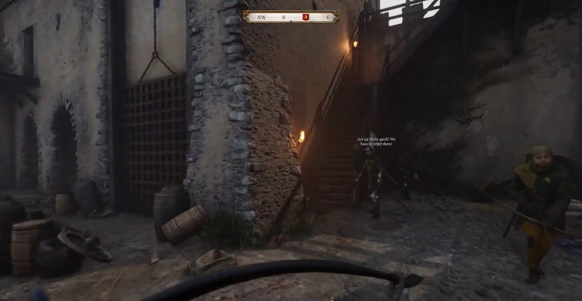 Квест начнется в самом начале игры после небольшой кат-сцены. Вы окажетесь во внутреннем дворе замка, находящегося под осадой. Перед вами будет лестница, ведущая на стену замка. Поднимитесь по ней.