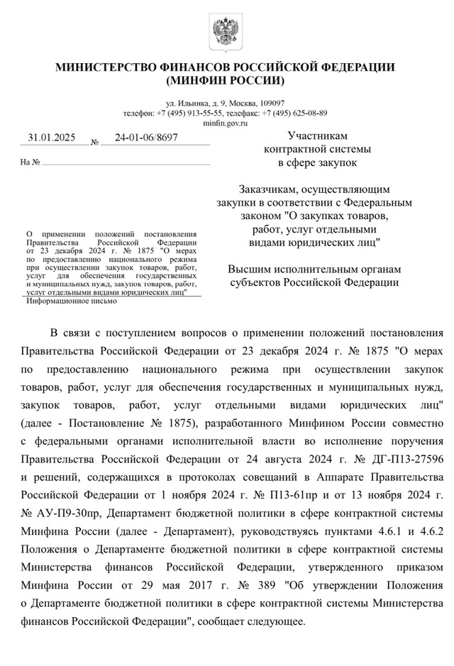 Минфин разъяснил применение национального режима в госзакупках по 44-ФЗ и 223-ФЗ